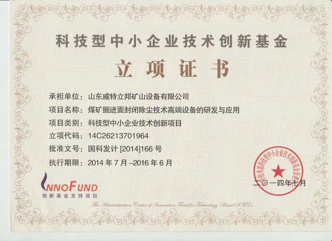 • 科技型中小企業技術創(chuàng)新基金立項證書